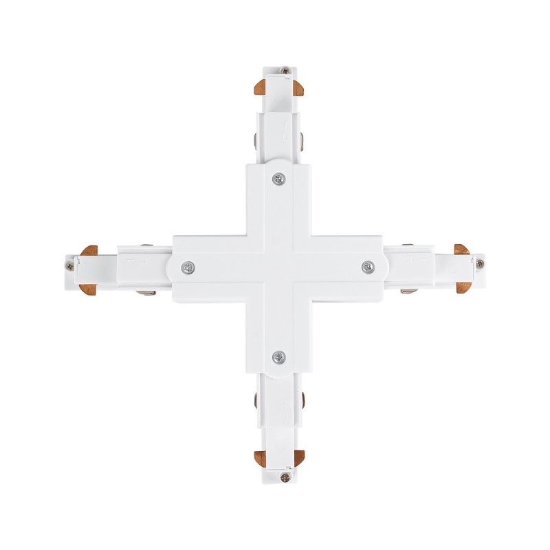 Le connecteur X permet d'assembler quatre sections de rails triphasés en saillie à un angle de 90°, formant ainsi une intersection sur un seul plan.