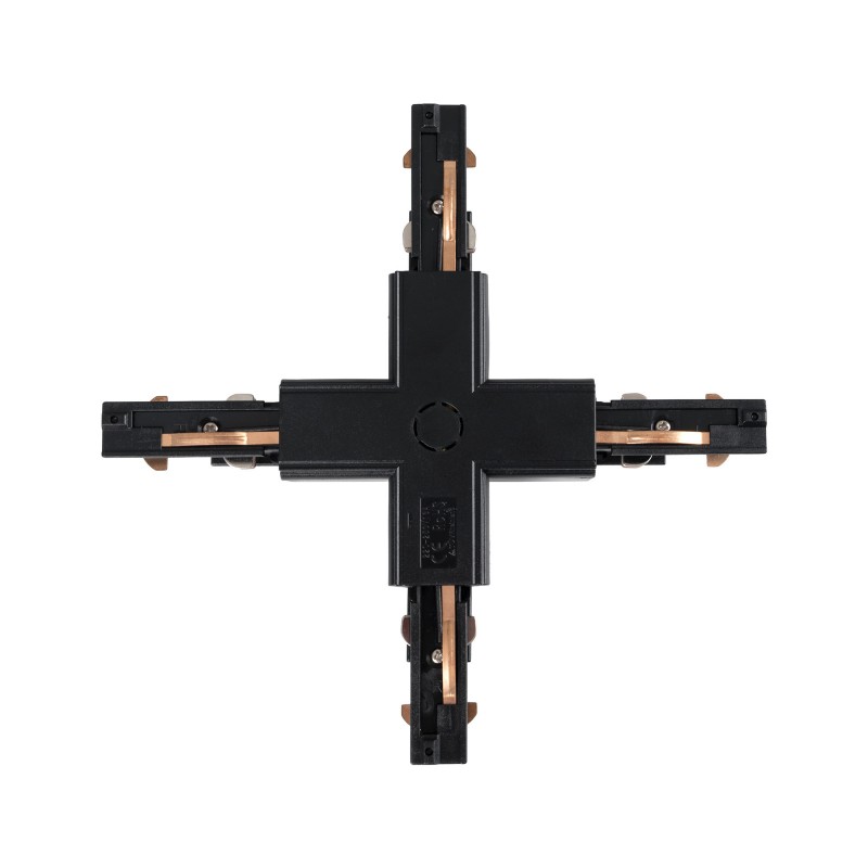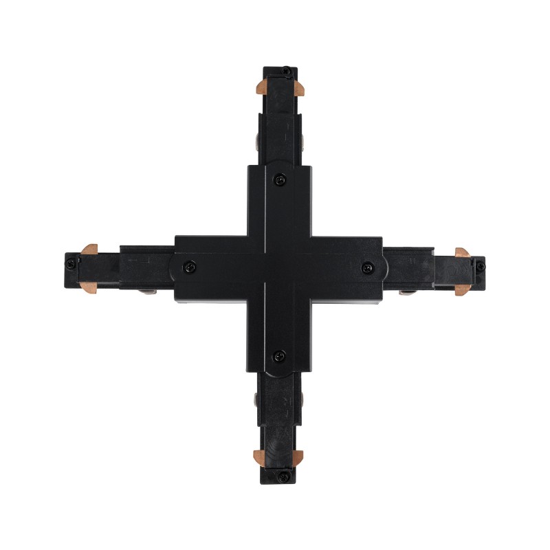 Le connecteur X permet d'assembler quatre sections de rails triphasés en saillie à un angle de 90°, formant ainsi une intersection sur un seul plan.
