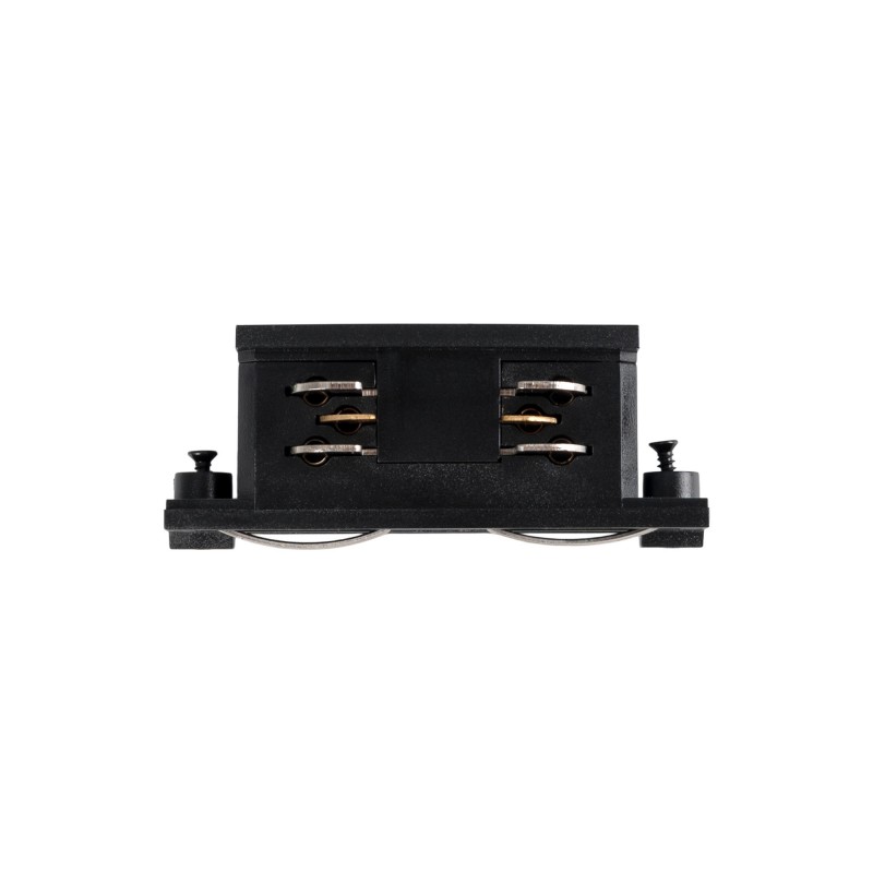 Accessoire de jonction pour barres omnibus triphasées encastrées. Cet accessoire permet d'obtenir une connexion longitudinale droite sans épissures ni points de coupure visibles. Il est compatible avec les systèmes de rails contrôlés par DALI.