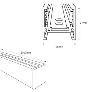 Rail magnétique 2627 de surface et suspendu - 20mm - 48V - 2 mètres