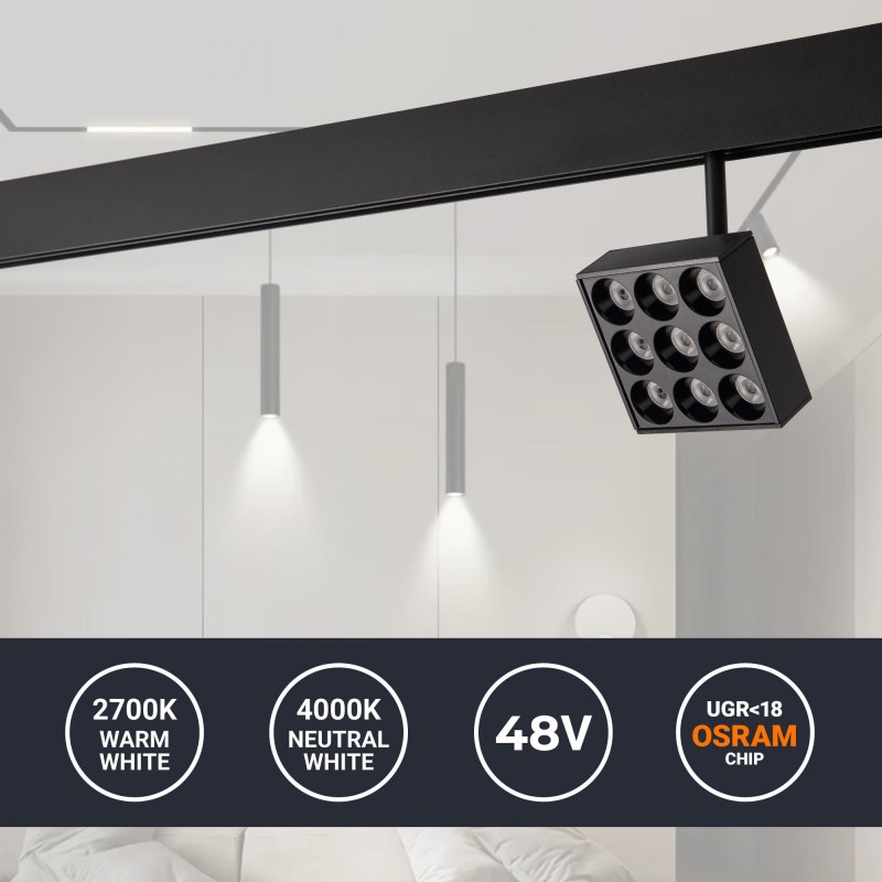 Luminaire magnétique Square LED 48V - 9W - CRI90 - UGR18 - OSRAM