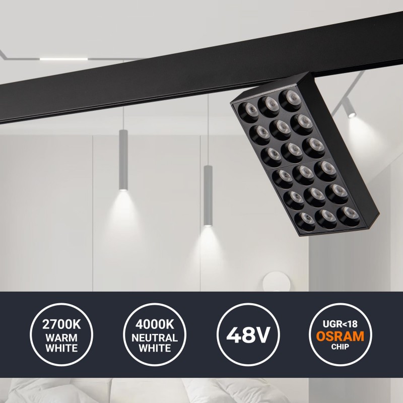 Luminaire rail magnétique Square LED 48V - 18W - CRI90 - UGR18 - OSRAM