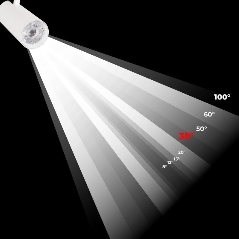Ce projecteur sur rail à LED triphasé se distingue par sa fiabilité et son excellent rendu des couleurs, idéal pour mettre en valeur des produits ou des détails dans les espaces commerciaux.