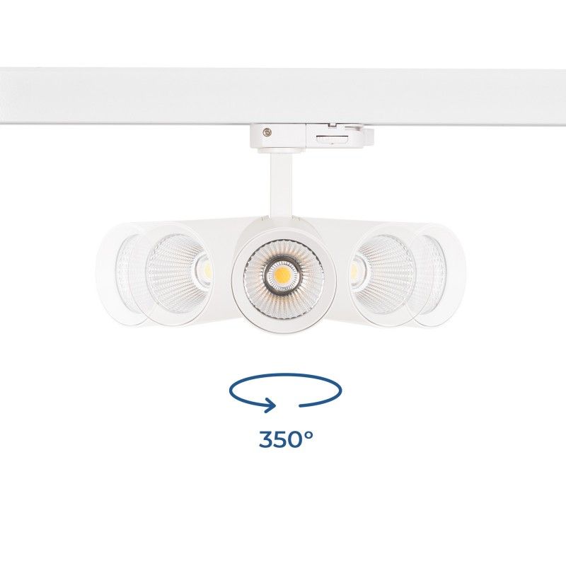 Ce projecteur sur rail à LED triphasé se distingue par sa fiabilité et son excellent rendu des couleurs, idéal pour mettre en valeur des produits ou des détails dans les espaces commerciaux.