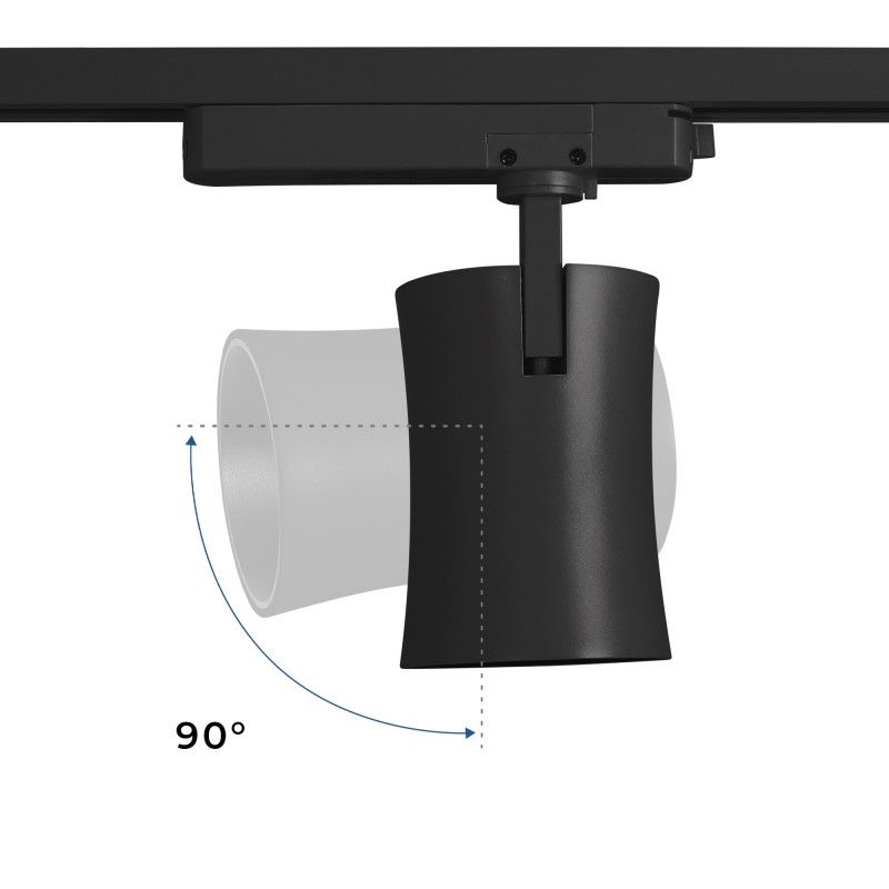 Ce projecteur est conçu pour les systèmes de rails monophasés et offre un design unique aux bords incurvés qui ajoute une touche moderne et sophistiquée à tout espace commercial.