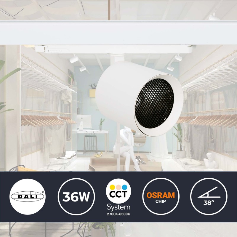 Projecteur LED 36W triphasé sur rail - DALI - CCT - CRI90 - puce OSRAM