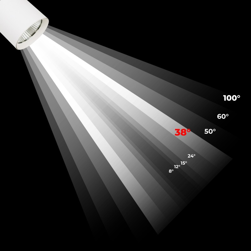 - Éclairage ciblé : avec un angle d'ouverture du faisceau de 38°, il est parfait pour mettre en valeur des zones spécifiques.