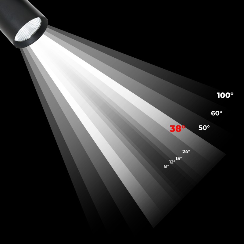 - Éclairage ciblé : avec un angle d'ouverture du faisceau de 38°, il est parfait pour mettre en valeur des zones spécifiques.
