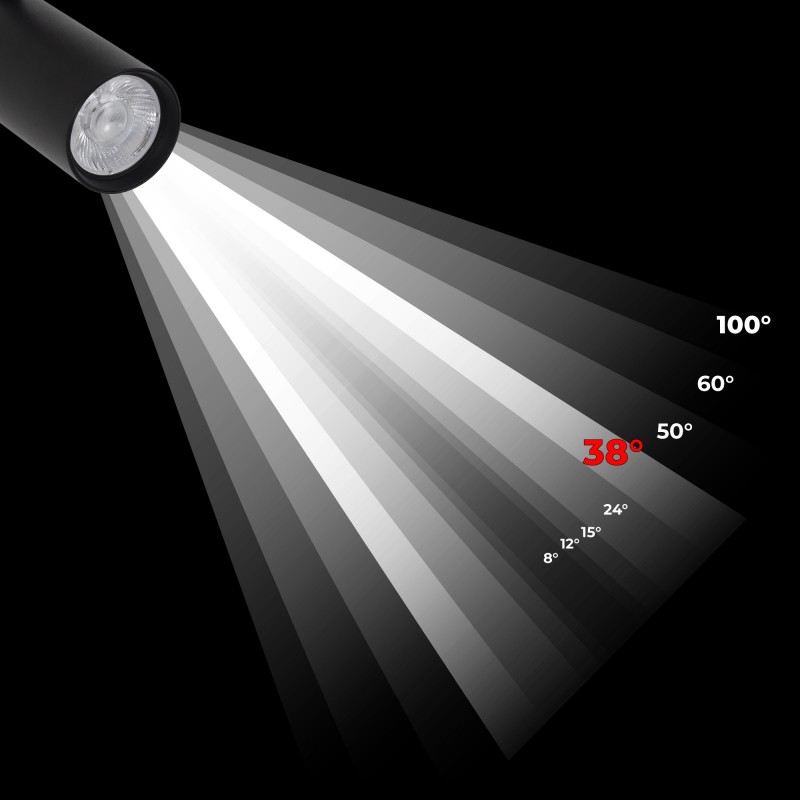 - Éclairage ciblé : avec un angle d'ouverture du faisceau fermé de 38°, il est parfait pour mettre en valeur des zones spécifiques.