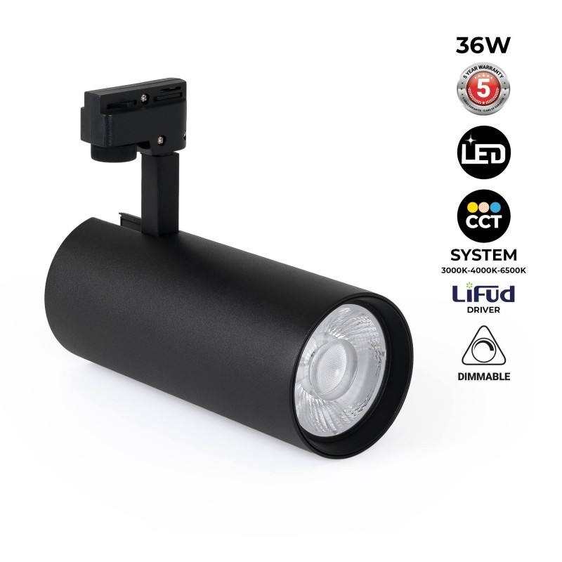 Projecteur LED monophasé sur rail - 36W - CCT - dimmable TRIAC - CRI90