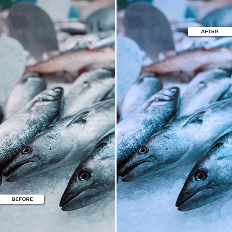 • Poissonneries et magasins de fruits de mer : améliore la fraîcheur et la couleur du poisson et des fruits de mer.