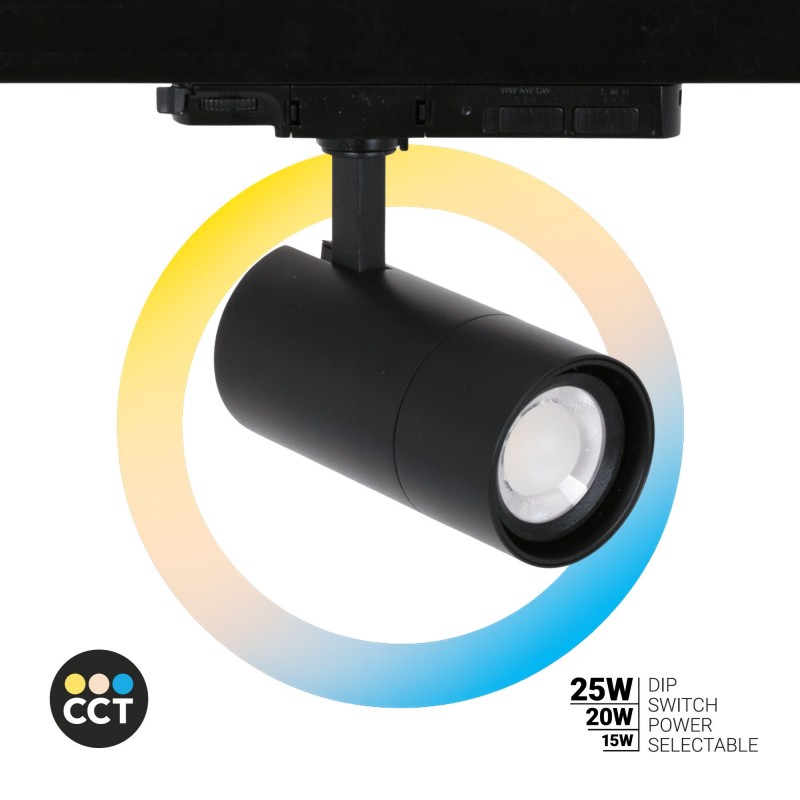 Projecteur LED pour rail triphasé - Puissance réglable + ZOOM : 15W/20W/25W - CCT
