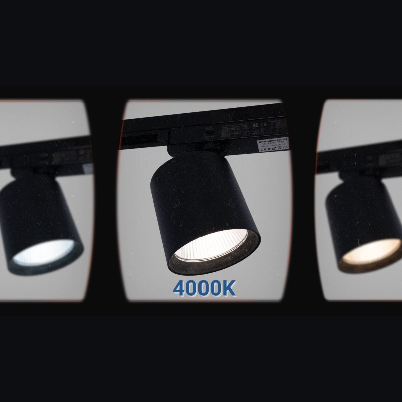 Projecteur LED sur rail monophasé CCT - 40W - IRC 90 - Noir