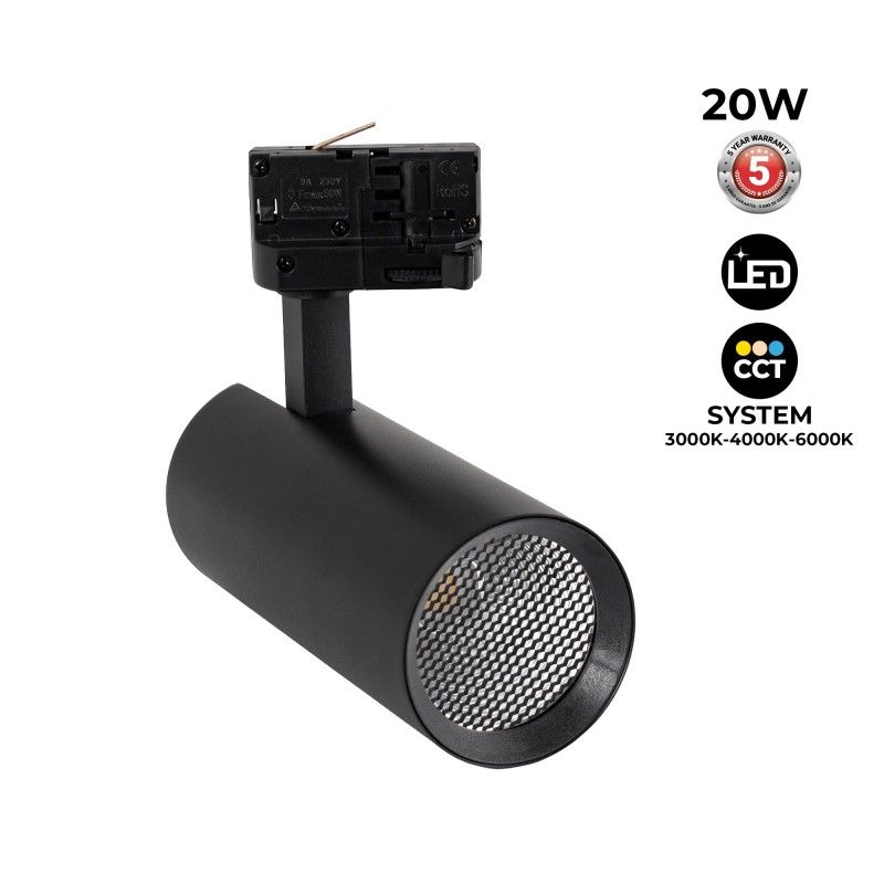 Projecteur LED pour rail triphasé 20W - CCT - CRI90 - 1900 lm