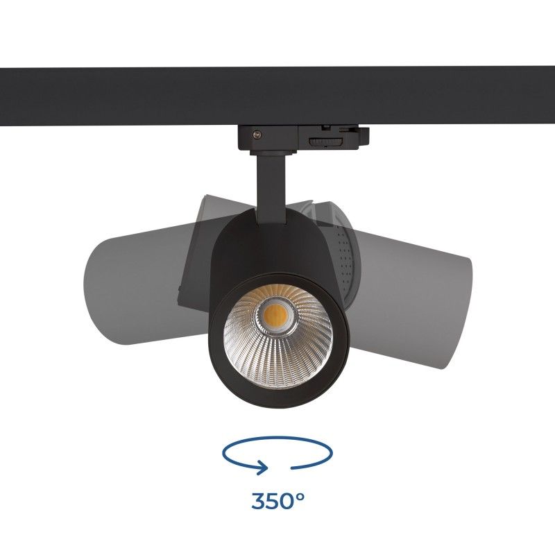 Ce projecteur sur rail à LED triphasé se distingue par sa fiabilité et son excellent rendu des couleurs, idéal pour mettre en valeur des produits ou des détails dans les espaces commerciaux.