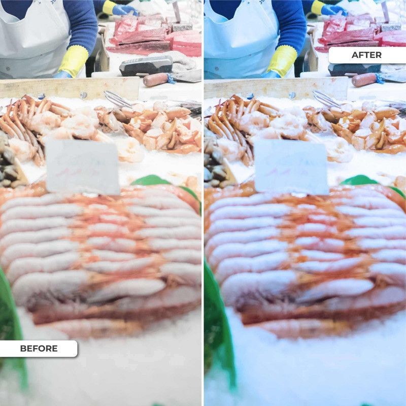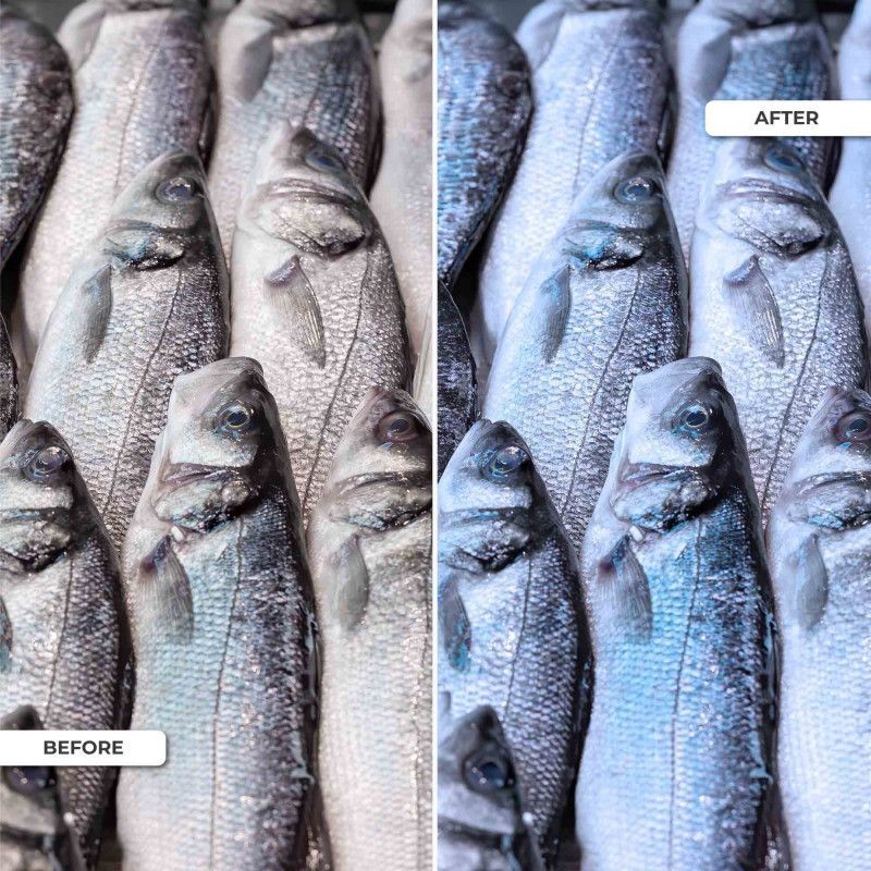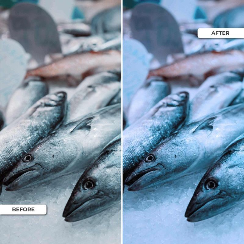 - Poissonneries et magasins de fruits de mer : Améliore la fraîcheur et la couleur des poissons et fruits de mer.