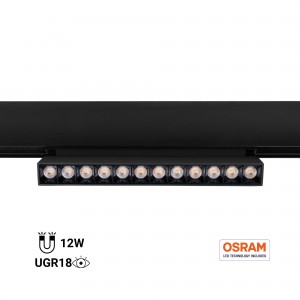 Spot LED linéaire orientable sur rail magnétique 48V - 12W - 2800K - Puce OSRAM - UGR18 - Noir