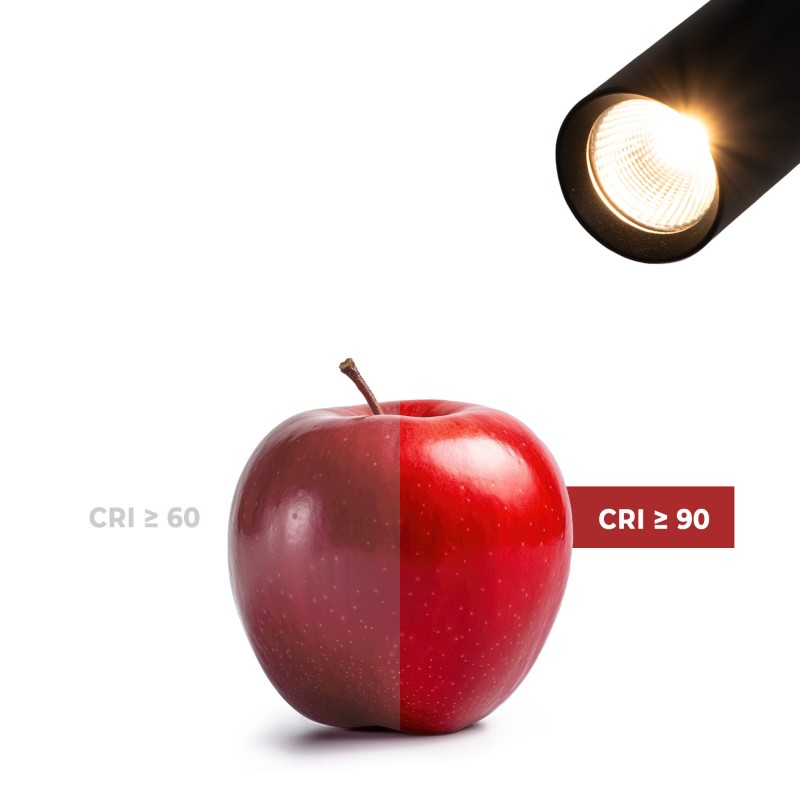 - Haute fidélité des couleurs (IRC >90) : reproduit les couleurs avec précision et naturel, idéal pour mettre en valeur les produits et les détails visuels.