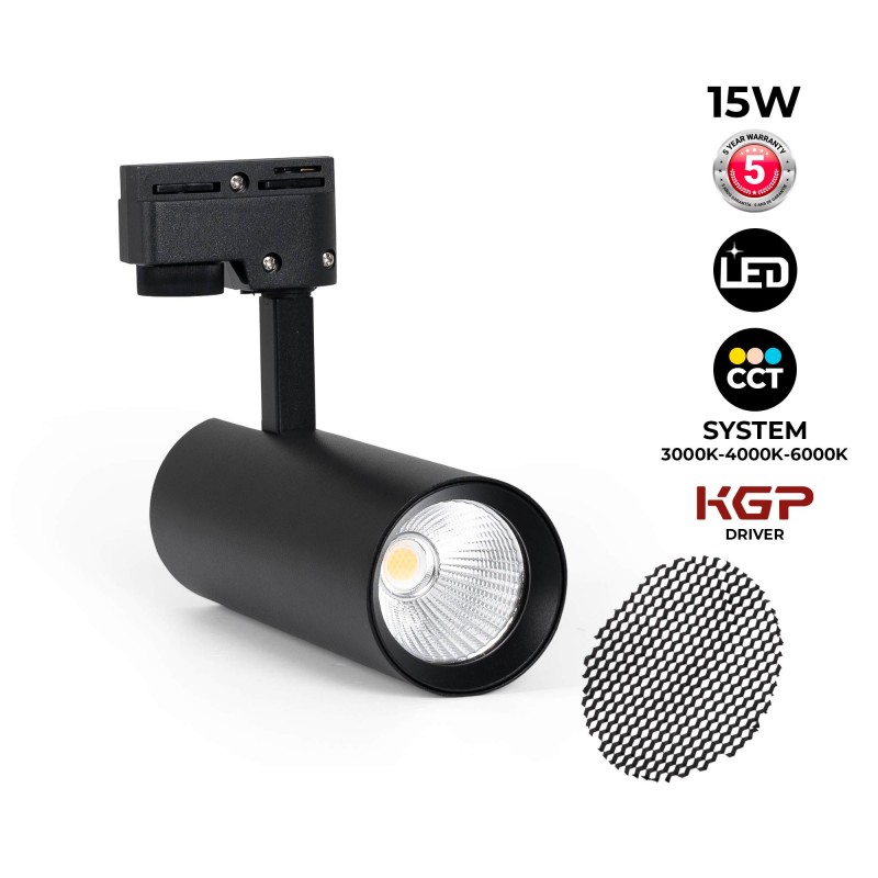 Spot LED sur rail monophasé - CCT - 15W - CRI 90 - Driver KGP