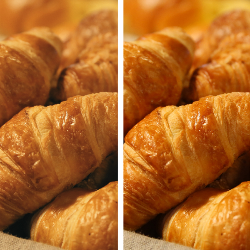 La lumière chaude des LEDs fait ressortir l'aspect doré des produits de boulangerie, comme s'ils sortaient tout juste du four. L'indice élevé de rendu des couleurs montre la couleur réelle de manière naturelle. Le pain, la pâte et les pâtisseries sont des produits qui, même s'ils sortent tout juste du four, peuvent perdre beaucoup de leur attrait s'ils sont soumis à un éclairage inapproprié qui les fait ressembler à des bâtons.