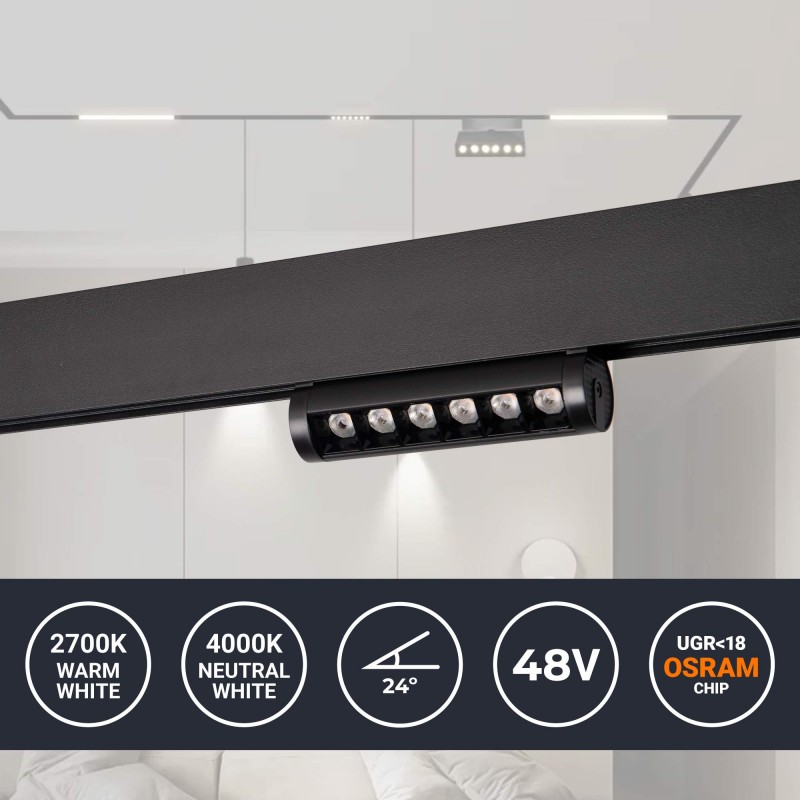 Spot linéaire orientable pour rail magnétique 48V- 6W - OSRAM chip - UGR18 - CRI90