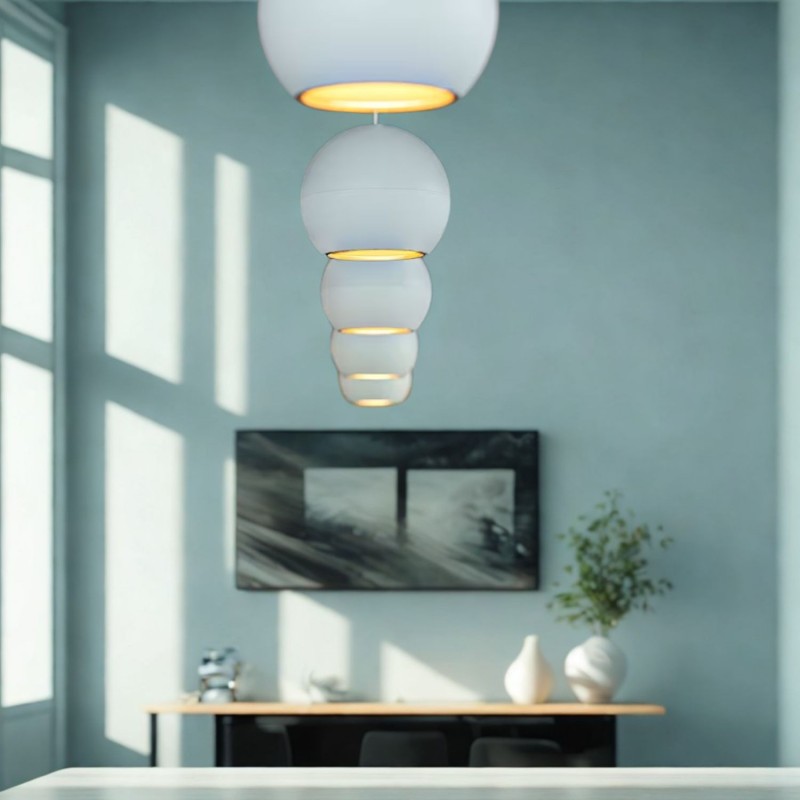 - Design sophistiqué : Avec une structure en aluminium et une finition noire ou blanche, son design sphérique et minimaliste en fait le choix idéal pour les espaces modernes.