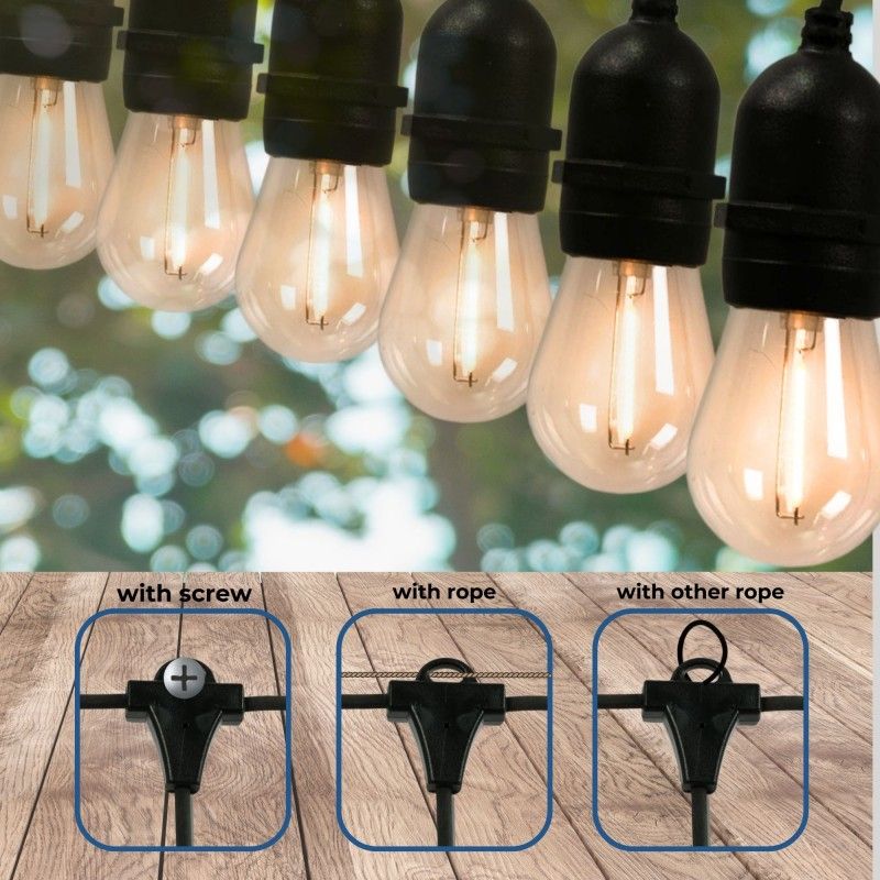 Guirlande guinguette solaire d'extérieur - 15 ampoules LED E27 à filament - IP44 - 10 mètres
