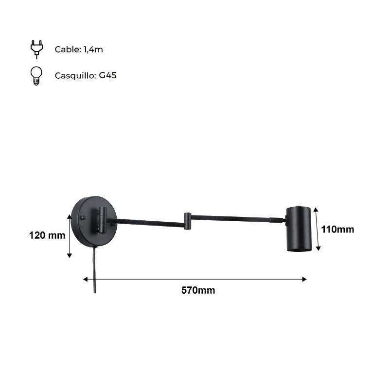 Pratique, notre applique est équipée d'un câble intégré avec interrupteur et prise de courant. Elle accepte une ampoule E27 G45 (non incluse) d'une puissance maximale de 40W.