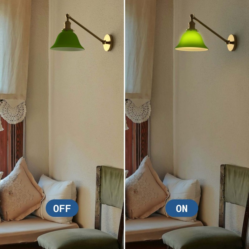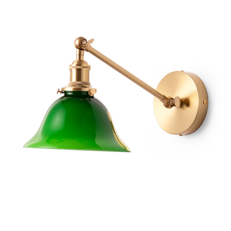 Cette applique allie un design modulable à des matériaux de haute qualité. Sa finition raffinée et son abat-jour en verre vert apportent une touche distinctive et sophistiquée à tout espace.