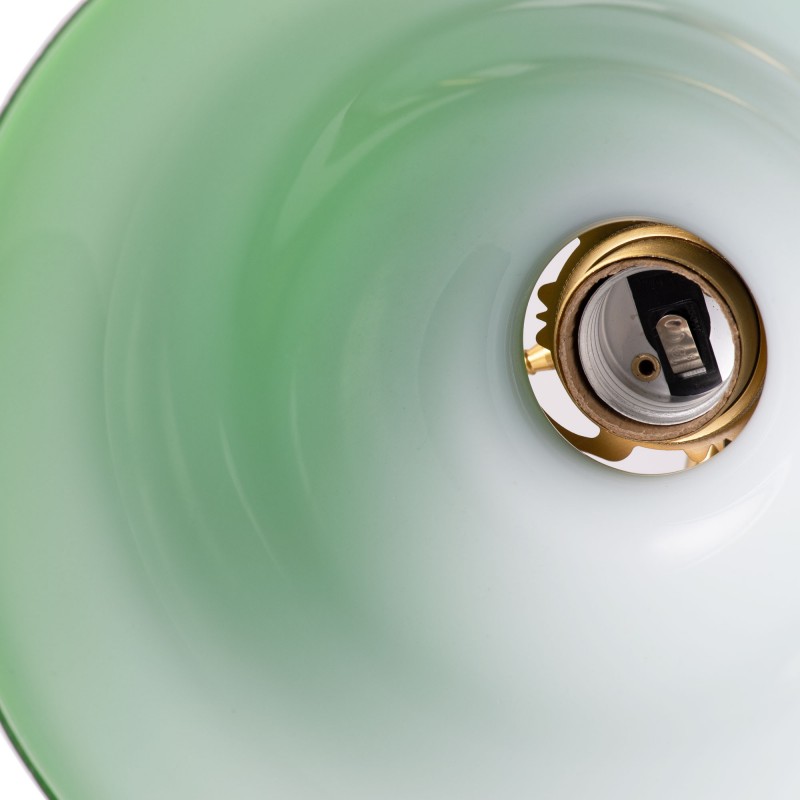 - Design : Structure en aluminium avec une finition or antique qui renforce son style industriel vintage. Abat-jour en verre vert.