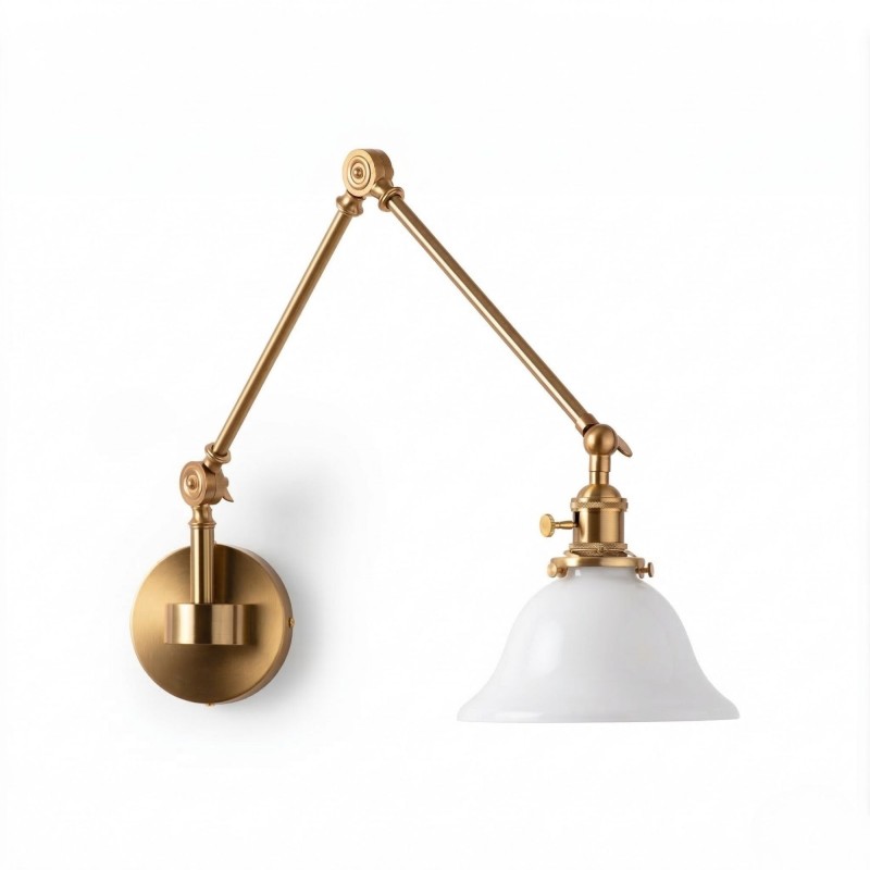 Cette applique murale se distingue par son design articulé et ses matériaux de haute qualité. Son esthétique rétro et ses finitions soignées lui confèrent caractère et polyvalence.