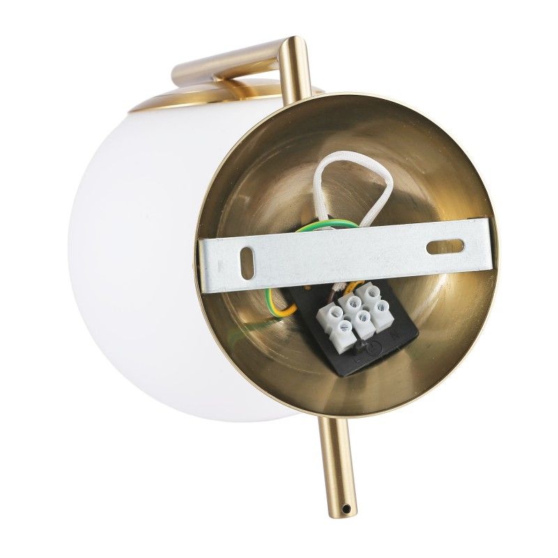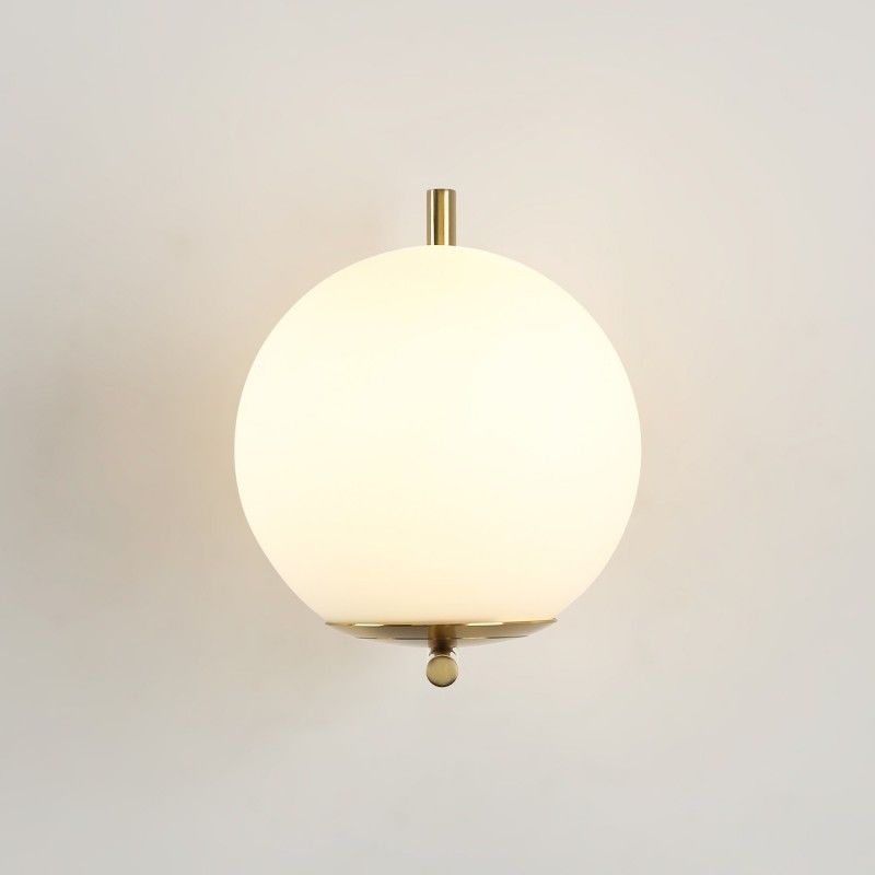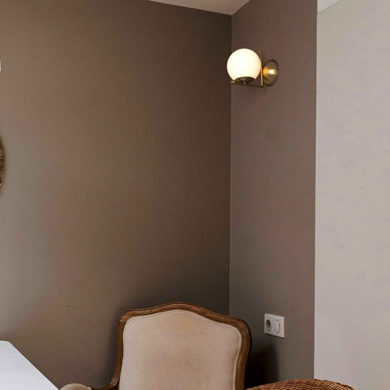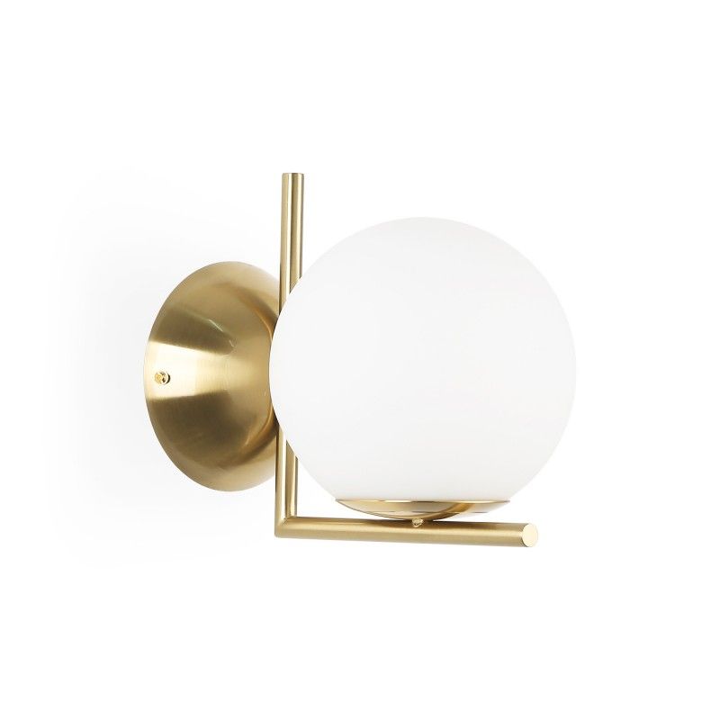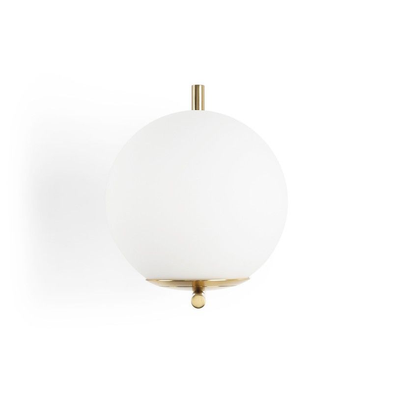 L'applique murale "ATOM" , de style classique et contemporain, associe une sphère en verre opale de 15 cm de diamètre à un support en aluminium raffiné.