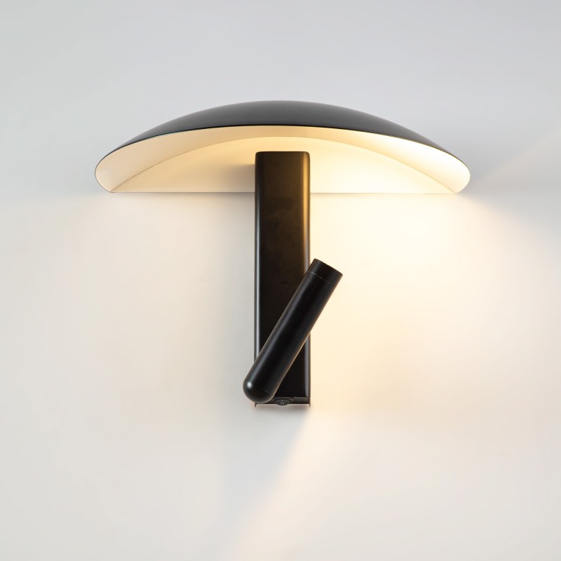 - Éclairage modulable : Équipée d'un seul spot LED de 3W en blanc chaud (2700K), qui peut être orienté pour une lecture directe ou vers l'abat-jour pour générer une lumière d'ambiance diffuse.