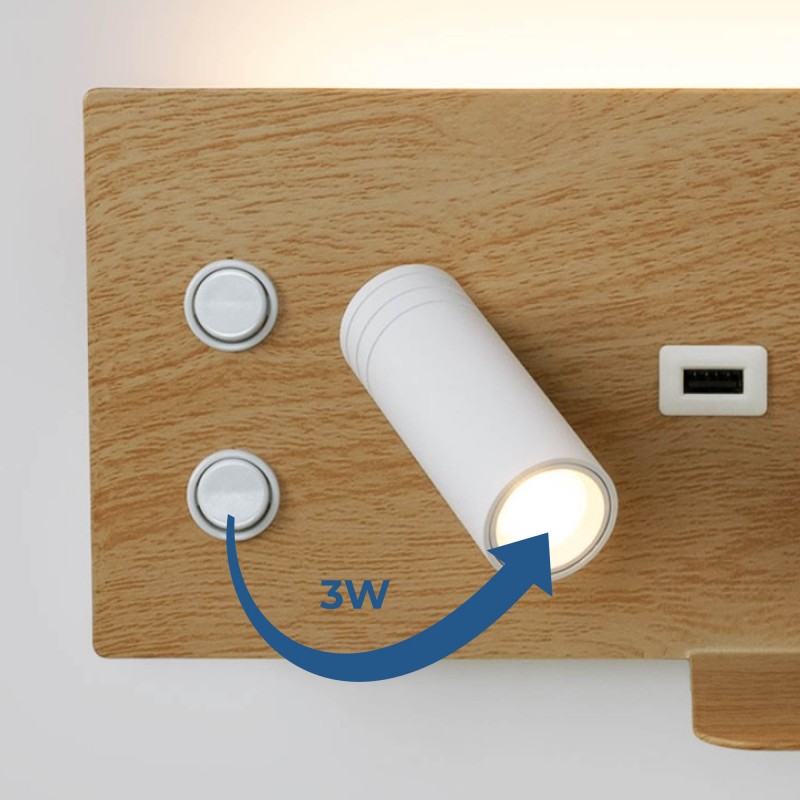 Applique de lecture avec port USB "Turin" - Double éclairage - 3W+7W - Effet bois