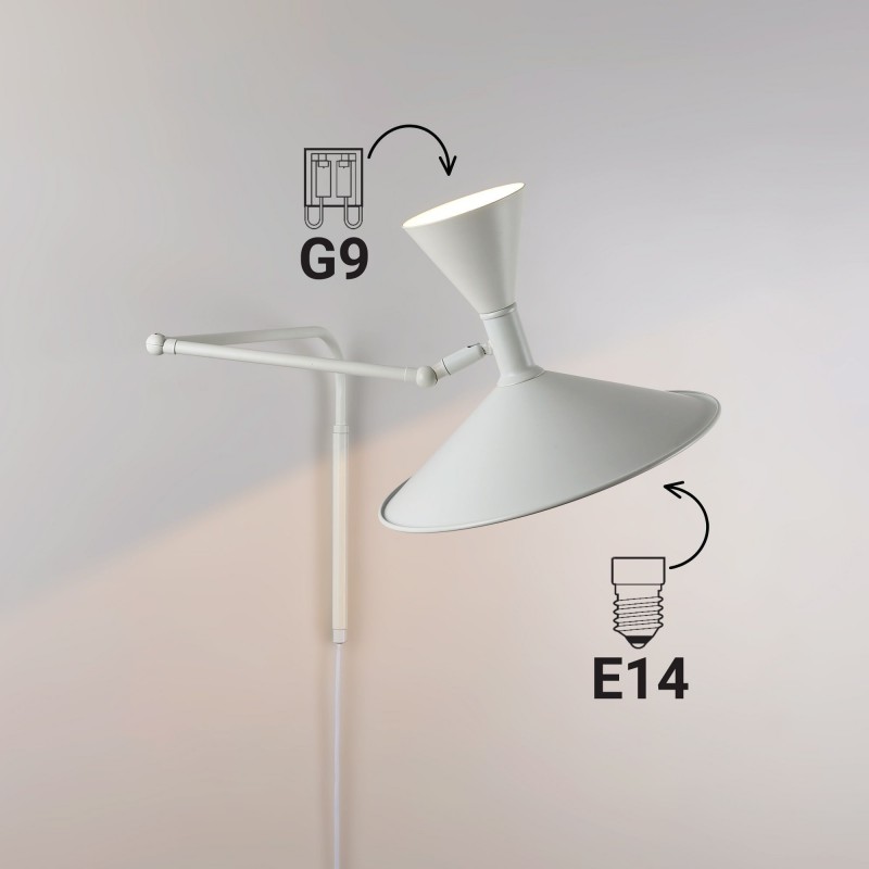 - Éclairage adaptable : Chaque abat-jour dispose d'une douille séparée : l'une est compatible avec les ampoules LED E14 jusqu'à 40 W et l'autre avec les ampoules LED G9 jusqu'à 5 W.