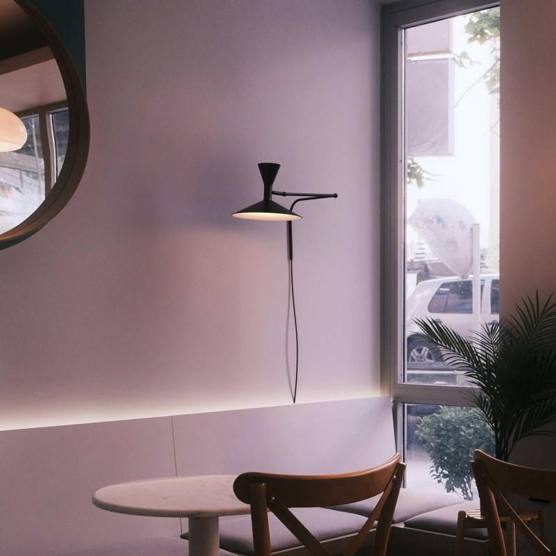 • Esthétique sophistiquée : Structure métallique articulée avec double abat-jour, qui projette une lumière bidirectionnelle pour améliorer l'esthétique et l'équilibre de l'espace.