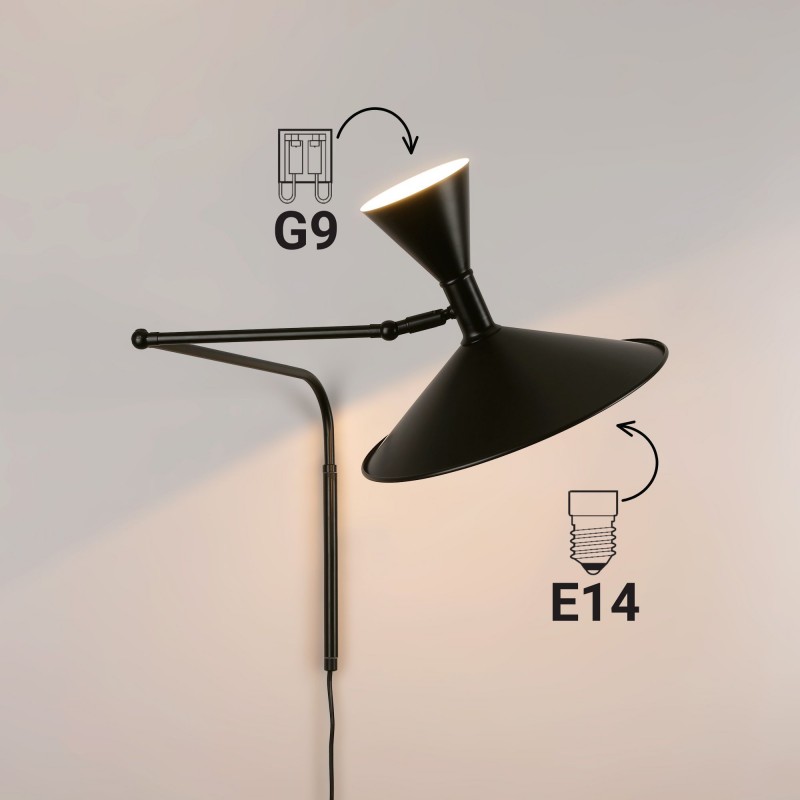 • Éclairage adaptable : Chaque abat-jour dispose d'une douille séparée : l'une est compatible avec les ampoules LED E14 jusqu'à 40 W et l'autre avec les ampoules LED G9 jusqu'à 5 W.