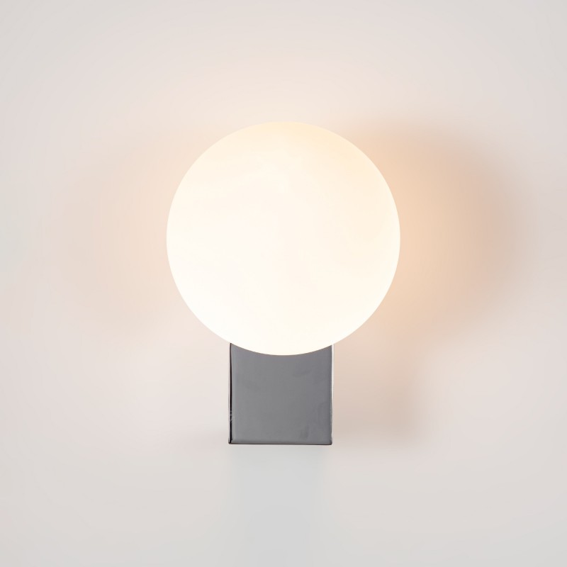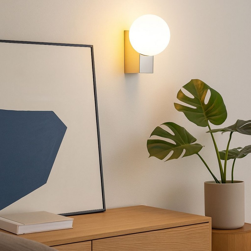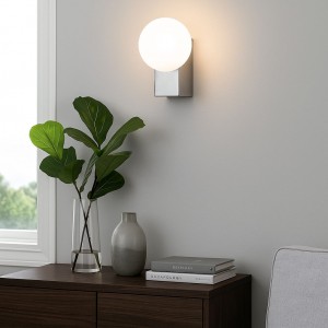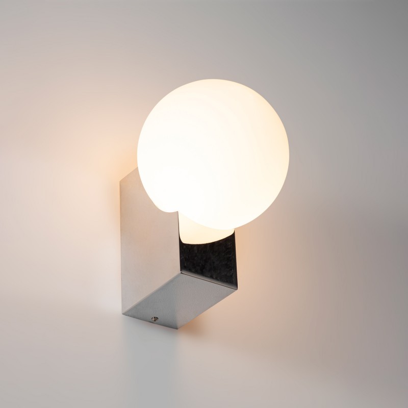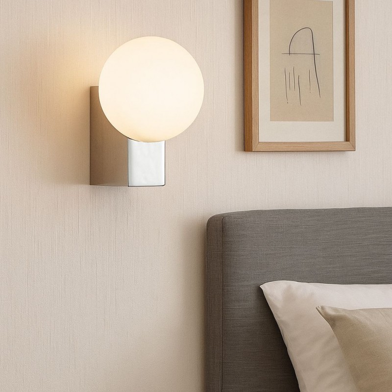 - Design minimaliste: Composée d'une sphère en verre opale sur un socle en aluminium, elle s'adapte parfaitement aux intérieurs classiques, rétro ou modernes.