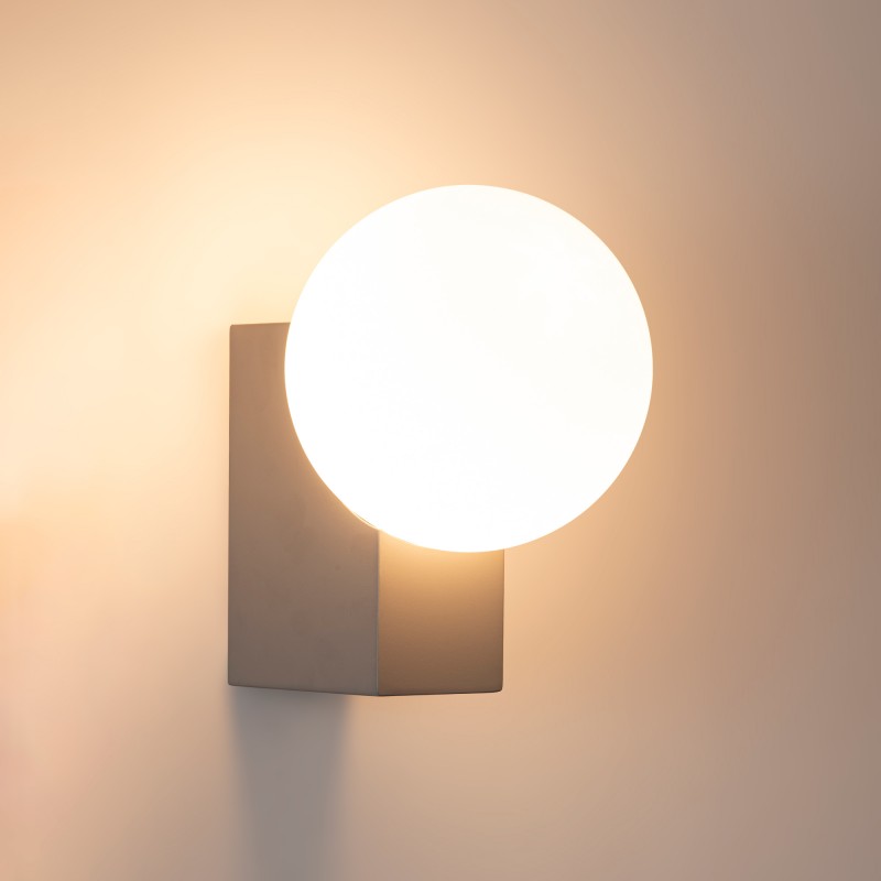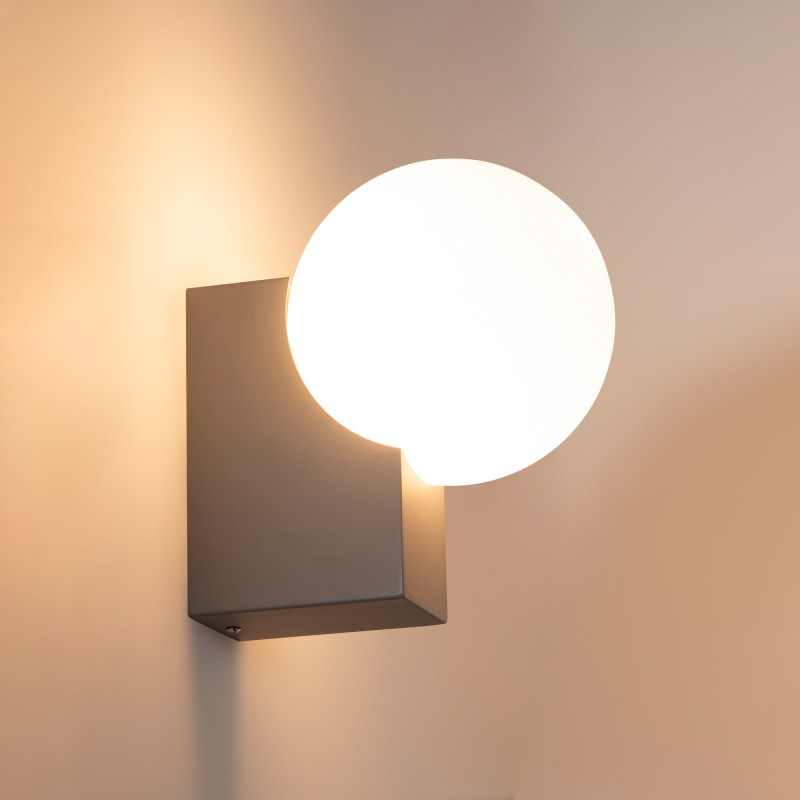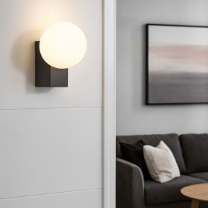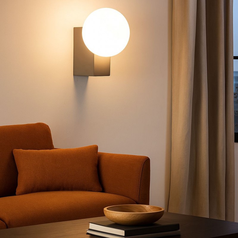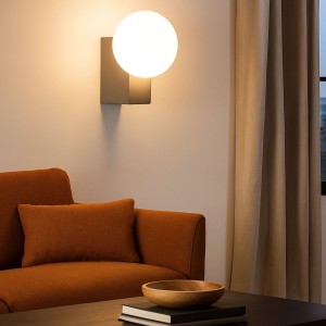 - Design minimaliste: Composée d'une sphère en verre opale sur un socle en aluminium, elle s'adapte parfaitement aux intérieurs classiques, rétro ou modernes.