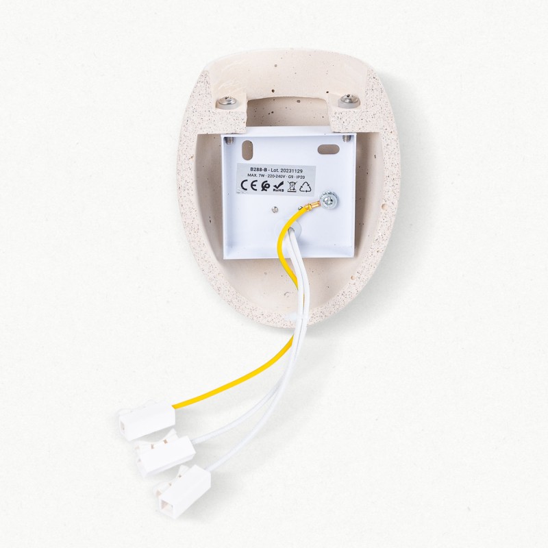Applique murale en ciment lisse avec douille G9, disponible en trois couleurs: blanc cassé, rouge brique et gris chiné.