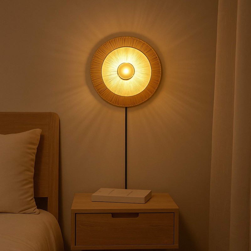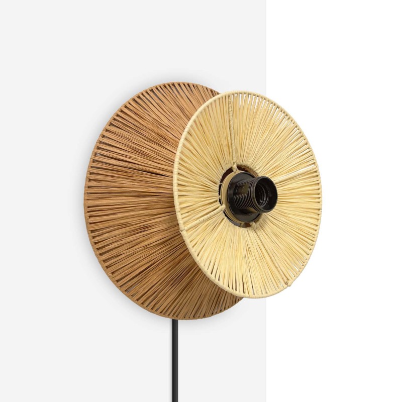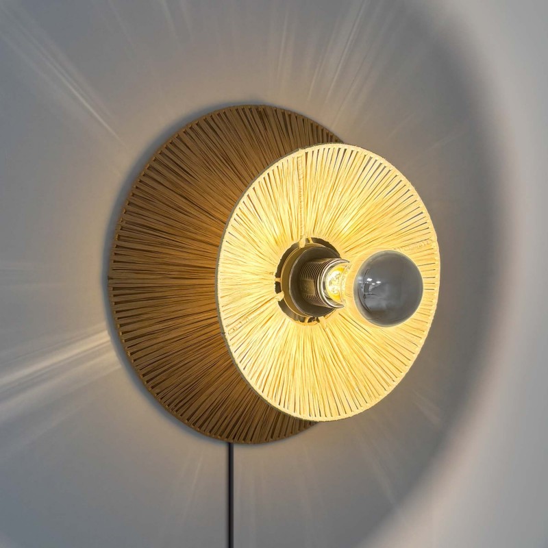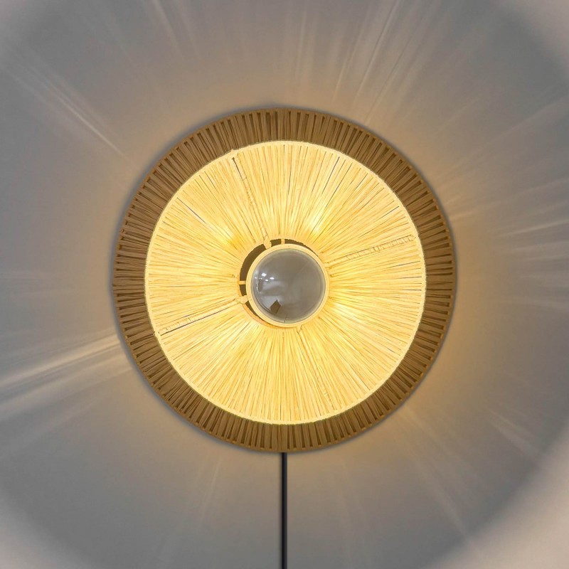 Applique murale en fibre naturelle Rafia "HALLIE" - E27 - Interrupteur et prise