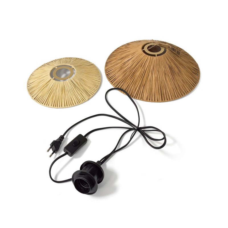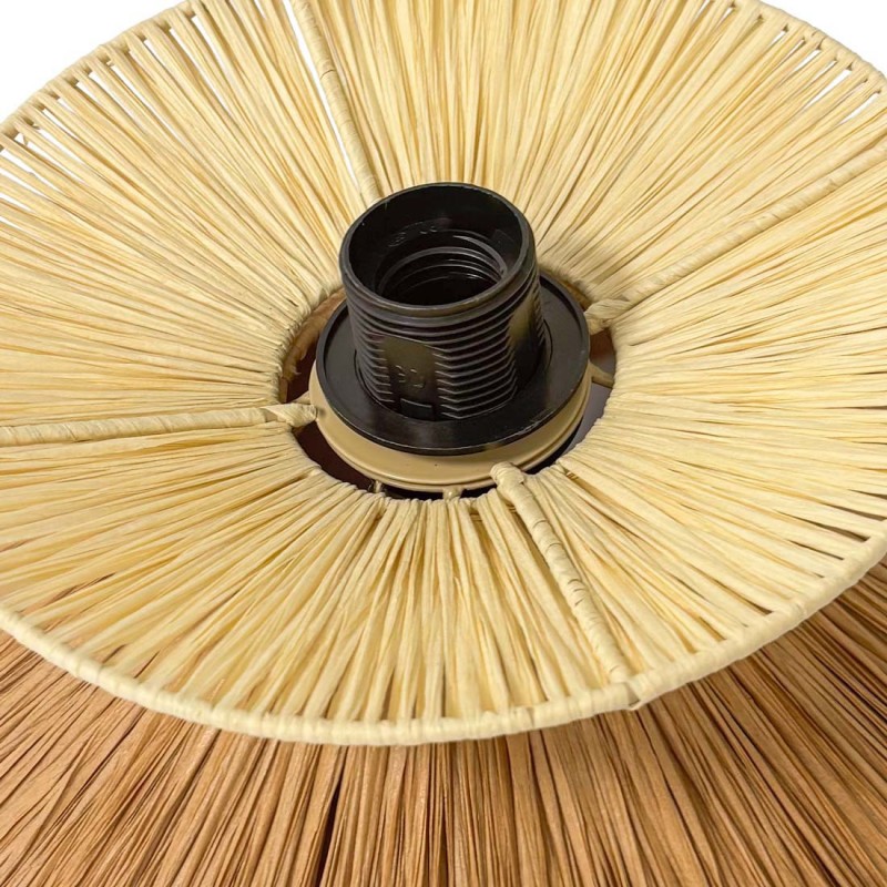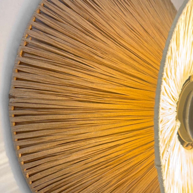 Son double abat-jour circulaire, en fibre naturelle de Rafia, projette une lumière douce générant un jeu d'ombres décoratif et douillet.
