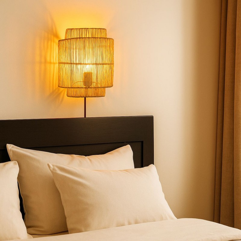Cette applique se distingue par son design fluide et organique, fabriqué à la main avec des fibres végétales qui renforcent la chaleur et la personnalité de l'espace. Elle est idéale pour les salons, les chambres à coucher, les couloirs ou les coins lecture.