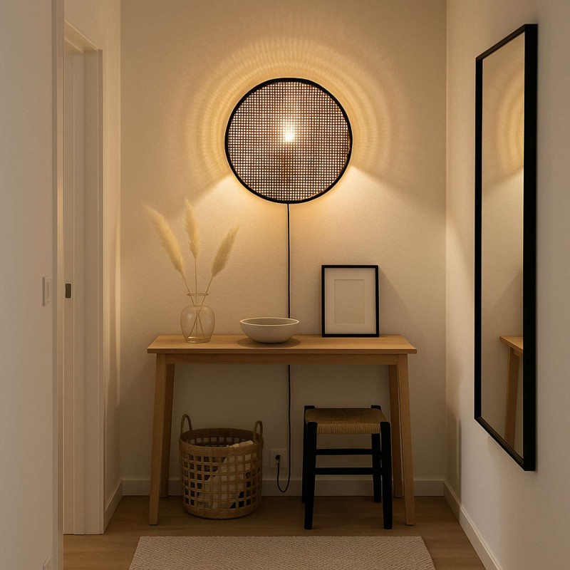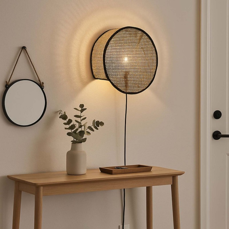Cette applique se distingue par son design fluide et organique, fabriqué à la main avec des fibres végétales qui renforcent la chaleur et la personnalité de l'espace. Elle est idéale pour les salons, les chambres à coucher, les couloirs ou les coins lecture.