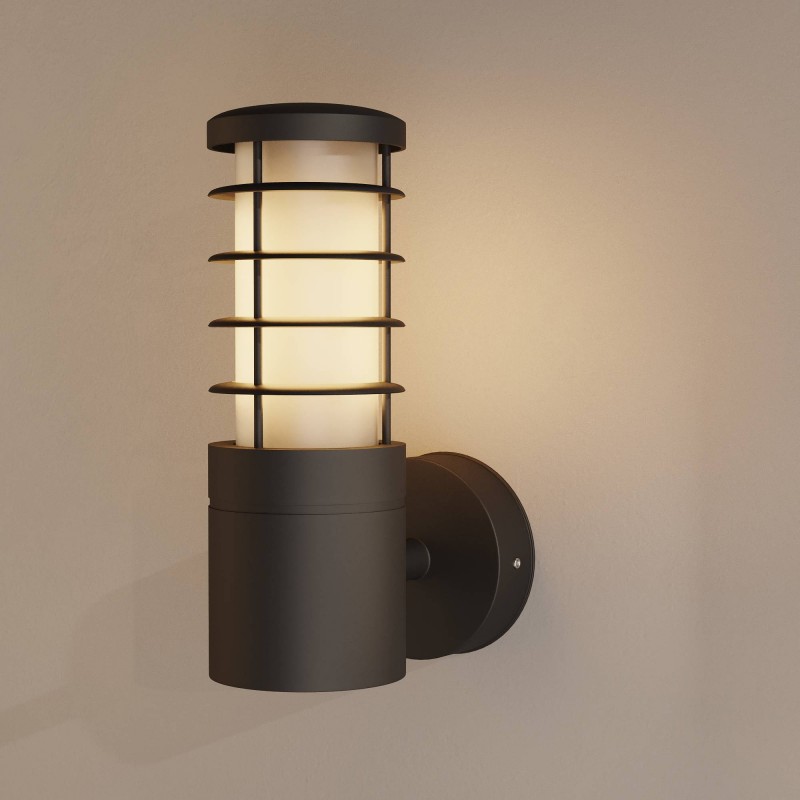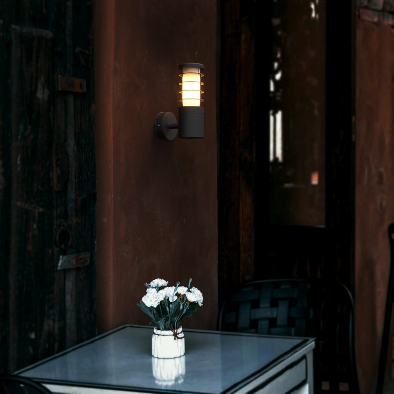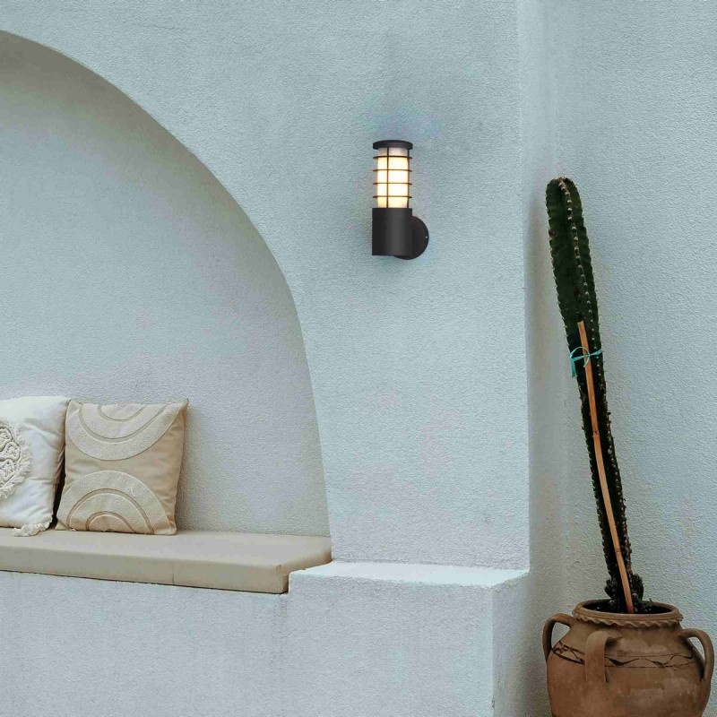 L'applique murale "Burno" se distingue par son design sobre et élégant en aluminium noir mat, conçu pour s'intégrer avec style dans tout espace intérieur ou extérieur couvert.