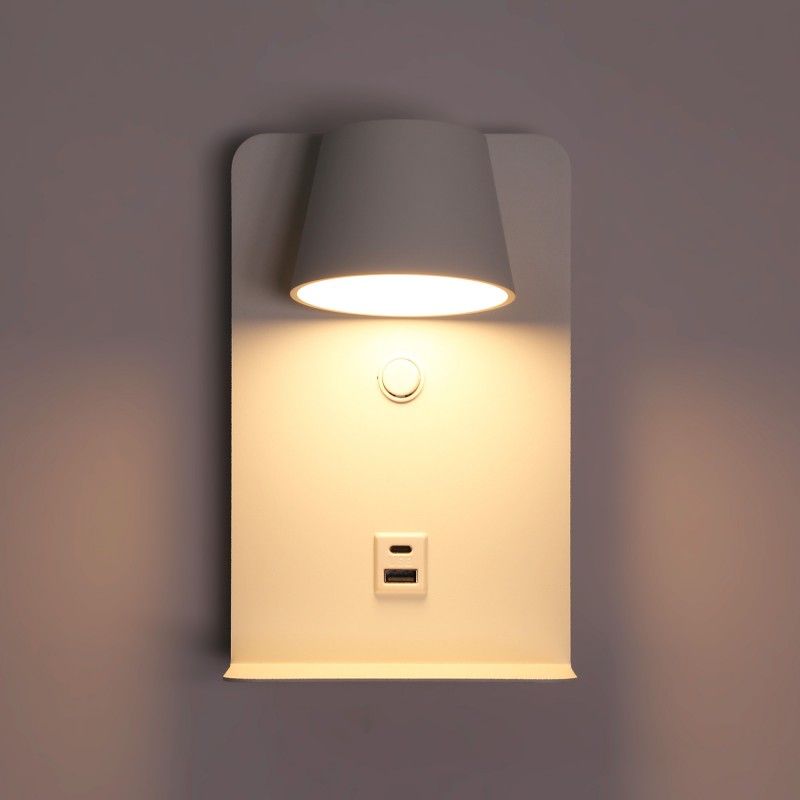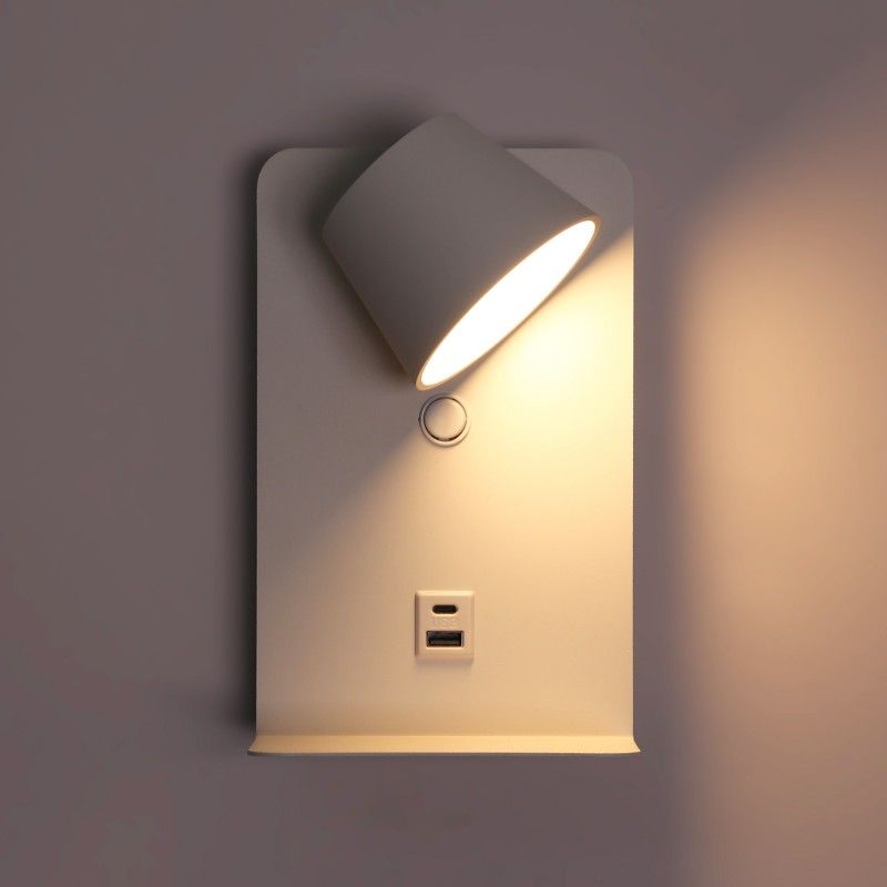 Avec son design de style nordique, cette applique s'intègre facilement dans les environnements modernes, alliant esthétique et solutions pratiques pour l'éclairage et le chargement des appareils.