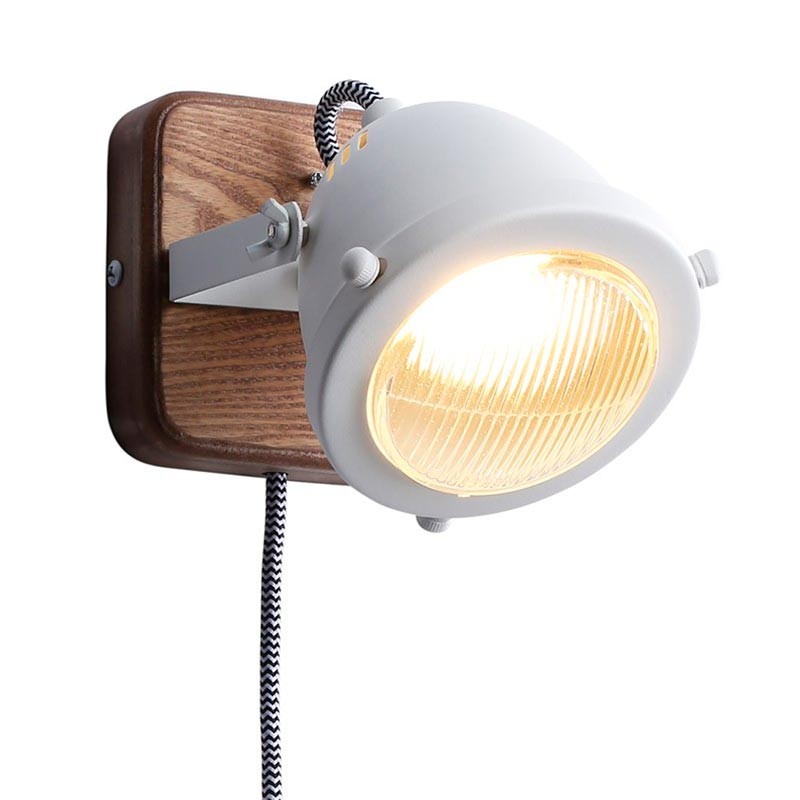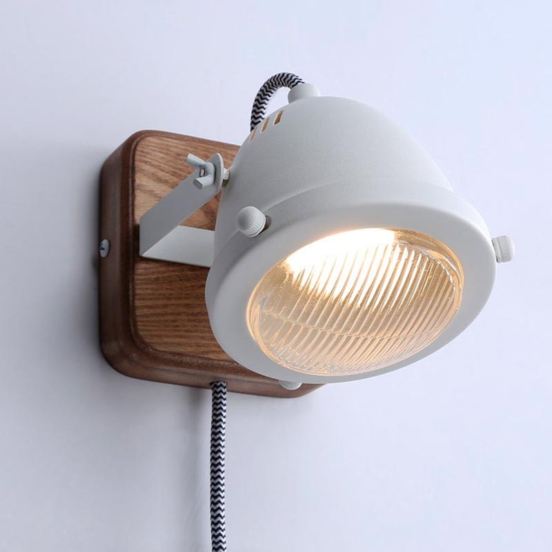 Lampe vintage en métal et base en bois "MOTT" | Applique murale