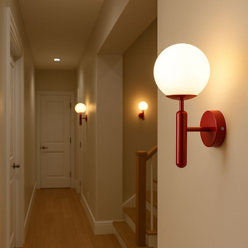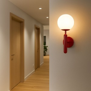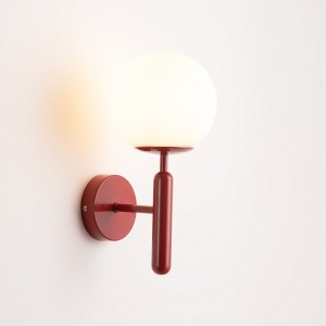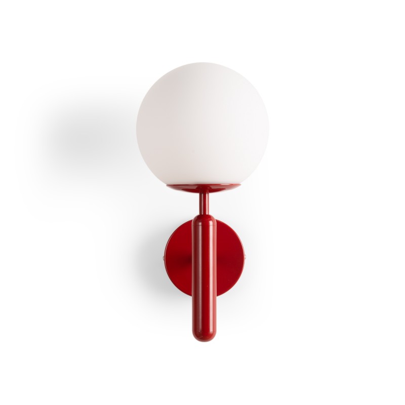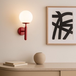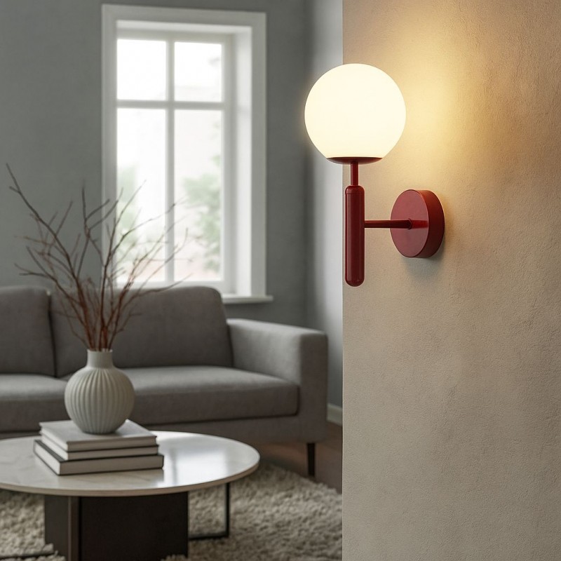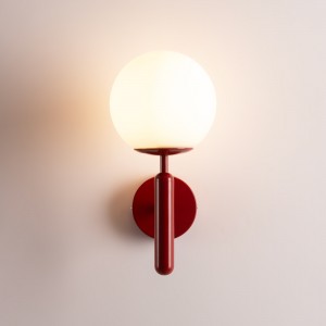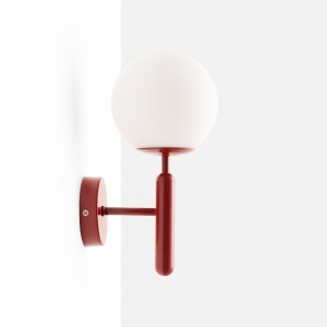 Applique murale "Elsa" au design élégant composée d’une sphère en verre opalin et d’une base métallique.