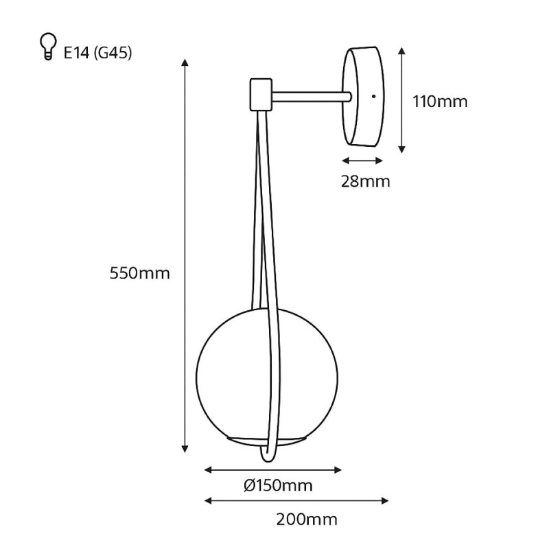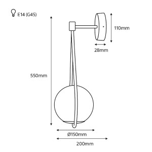 Elle est équipée d'une douille acceptant une ampoule sphérique E14 G45 (non incluse) d'une puissance maximale de 40W.