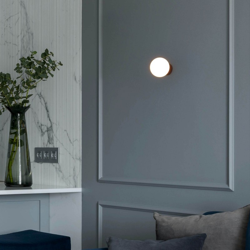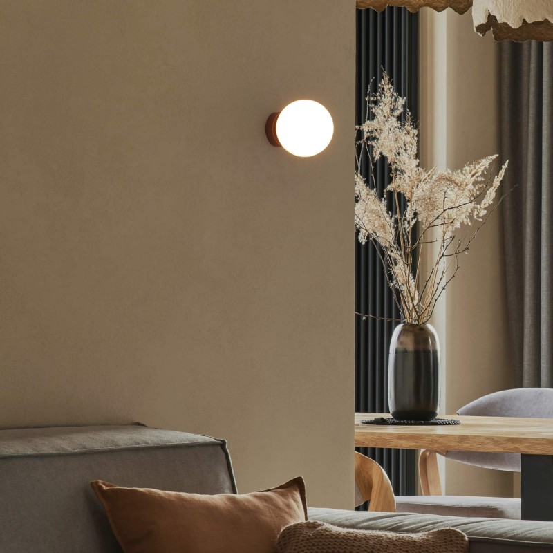 L'applique murale "Rober" offre un design élégant avec une sphère en verre opale et une base en métal.